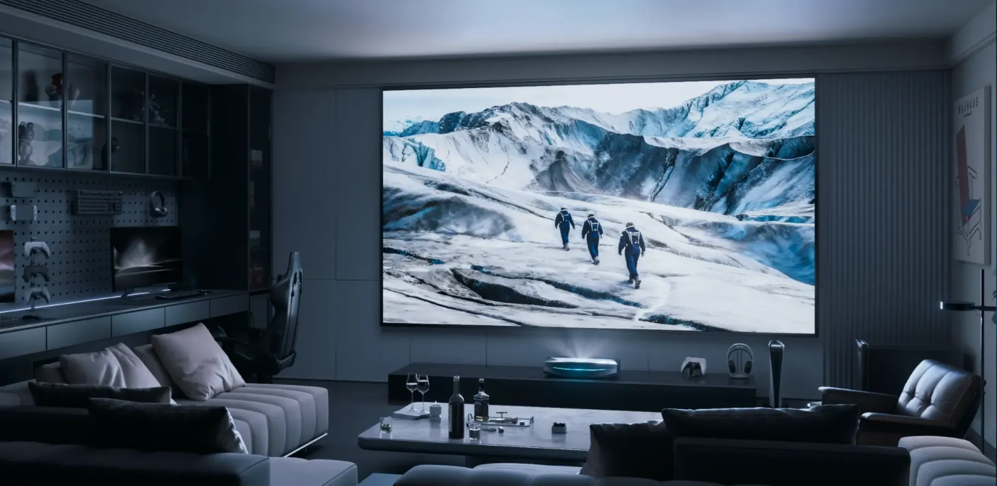 Als UST-Projektor (Ultra-Kurzdistanz) erzeugt der AWOL Aetherion bereits aus minimalem Wandabstand extrem große Bilddiagonalen. Dadurch eignet er sich ideal für elegante Setups ohne klassische Deckenmontage oder sichtbare Kabelwege.